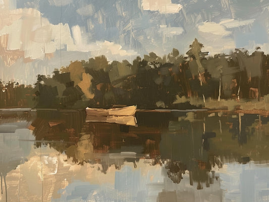 Klidné jezero s lodí