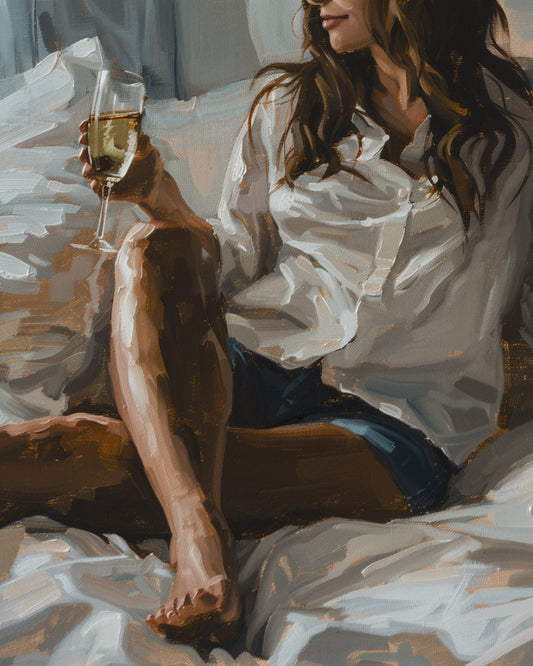 Žena s šampaňským v posteli