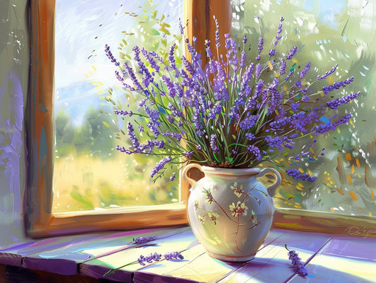Levandule ve váze u okna