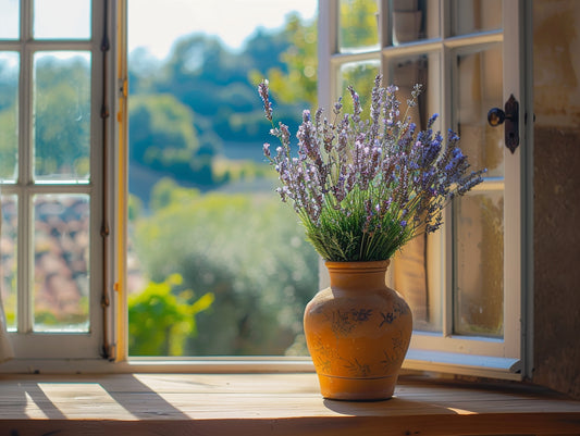 Levandule ve váze u okna
