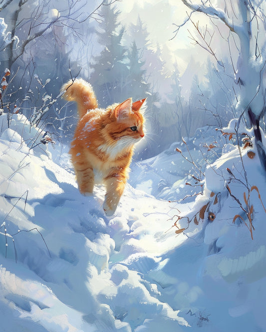 Kočka v zimní krajině